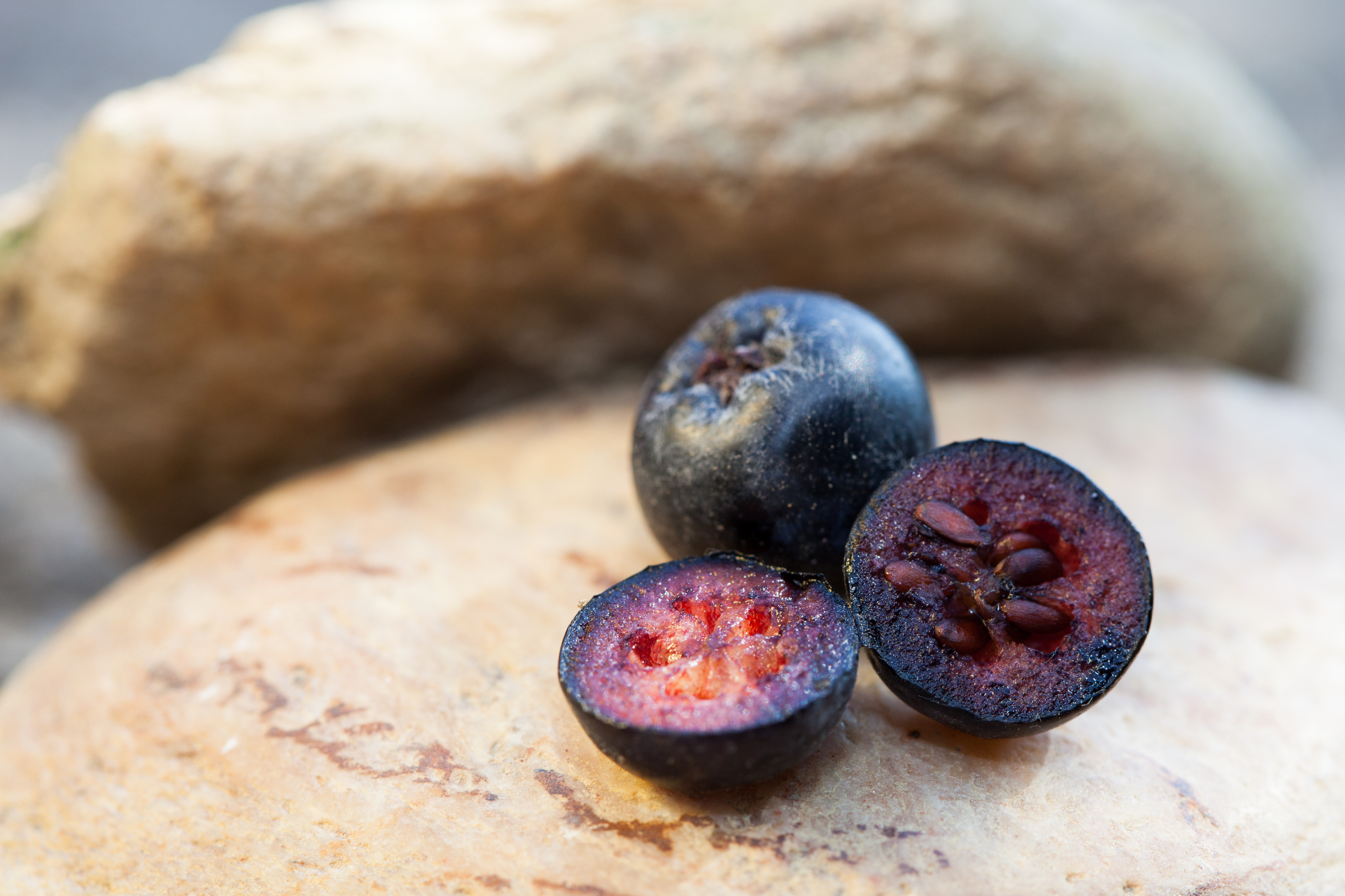Wenn sie reif ist hat die Beere innen ein dunkelrotes Fruchtfleisch.
